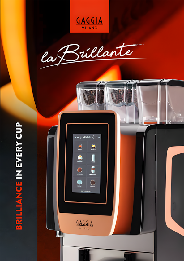 Ekspres do kawy Gaggia La Brillante to nowość od włoskiego producenta, który zachwyca nie tylko swoim designem, ale również dużą wydajnością na poziomie do 200 kaw dziennie. La Brillante przykuwa swoją uwagę dużym 7 calowym wyświetlaczem, dzięki czemu obsługa ekspresu jest prosta i intuicyjna. Możliwość przygotowania napojów kawowych oraz produktów instant urozmaica menu, dzięki czemu każdy znajdzie coś dla siebie. Gaggia La Beillante to urządzenie, które jest przeznaczone do dużych biur, hoteli, restauracji i punktów samoobsługowych. Ekspres prezentuje się bardzo nowocześnie, dzięki wyjątkowemu wzornictwu i podświetlaniu ekranu LED RGB .