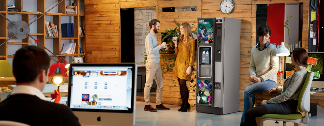 Wszystko kręci się wokół niezwykłego ekranu full hd o przekątnej 13,3”, który radykalnie poszerza ofertę napojów i ilość informacji dostępnych dla konsumenta w porównaniu z tradycyjnym dystrybutorem.